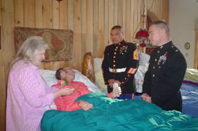 Denali Hospice Volunteer Lita with Marine B.J. Lewis, 1st Sgt. Rodolfo Sarino & Maj. Brent Goodrum (right)